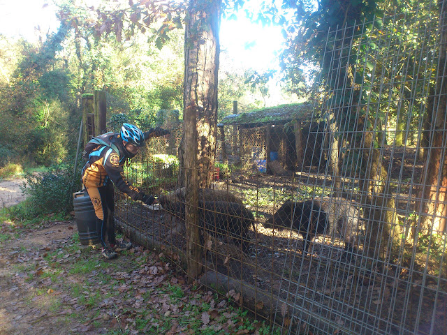 Tradición también es visitar a los jabalíes de la zona por estas fechas que agradecían nuestra presencia.